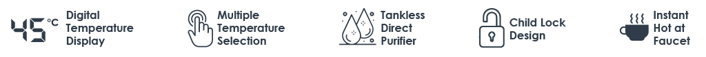 Enjoy instant hot water at your fingertips – it’s produced right at the faucet, not in the heater