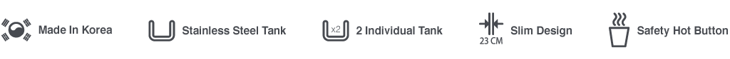 Stainless Tank Capacity | Ambient 1.00L/Cold 1.62L/Hot 1.80L | ||
